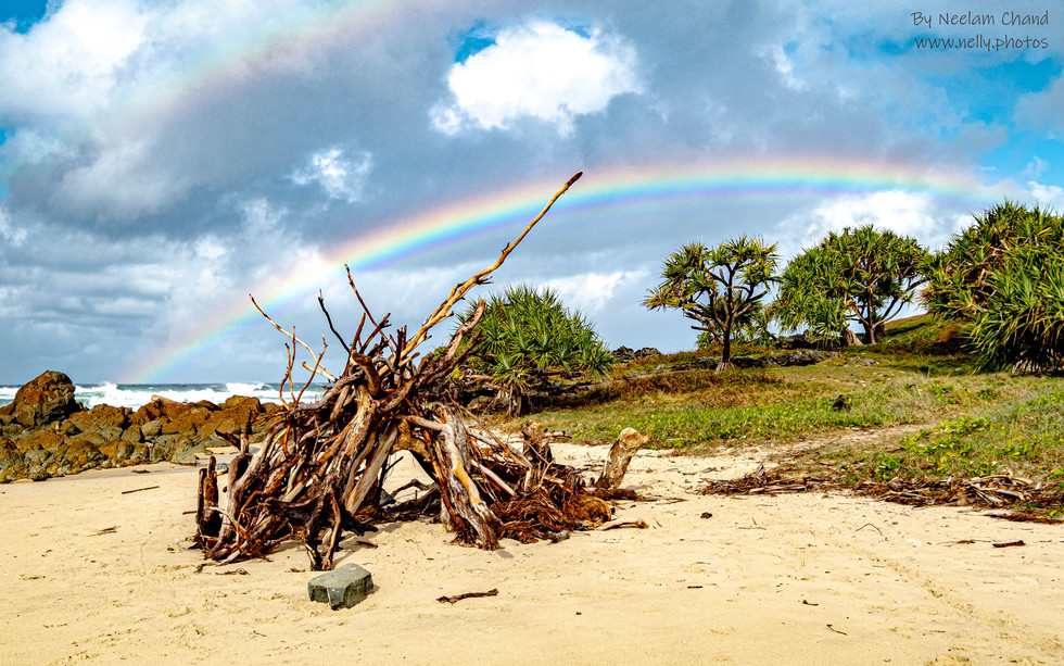 Hastings Point greeted me with a dramatic sky and a surprise rainbow that arched gracefully over the beach. The foreground was dominated by a sculptural pile of driftwood twisted, weathered, and arranged like a ceremonial structure. It felt almost like nature’s own monument, standing resilient against the elements. Shooting with my Fujifilm X-H2S, I was able to capture the full dynamic range from the deep shadows in the driftwood to the iridescent hues of the rainbow.